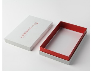 這個襯衫禮盒定做選用的材質是雙銅紙,雙面銅版紙是銅版紙的一種,就是雙面涂布,兩面都具有很好的平滑度,印刷出來的產品都很精美;素雅的顏色,簡約的圖文排版,整個禮盒給人的感覺就是干練,有氣場,作為襯衫的禮盒,這樣的氣質再好不過了;天地蓋圍邊設計使包裝盒更加的精致,圍邊的紅色裱紙與紅色的logo互相呼應,真的是一片和諧啊。