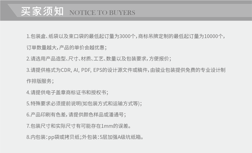 | 面紙 | 1.材料:銅版紙,特種紙,牛皮紙,黑卡紙;2.厚度:110,120,128,150,157克;一般情況:特種紙:110,雙銅紙157克 |