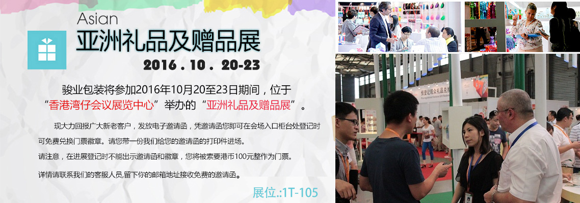 亞太區內其中一項舉足輕重的超大型貿易展會-亞洲禮品及贈品展將于2016年10月20至23日香港灣仔國際會議展覽中心隆重舉行,屆時廣州駿業包裝盒制作廠家將盛裝亮相。