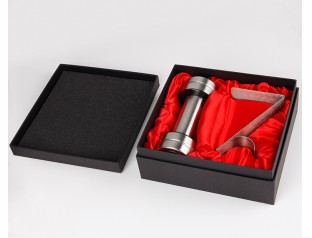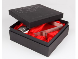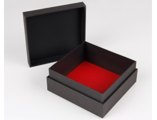 圍邊天地蓋禮盒定制是以雙銅紙作為原料,盒子表面的logo采用uv印刷工藝,覆啞膜;作為五金的包裝盒在盒子內鋪了一層色丁布,增加禮盒的高級感,即使裝的是幾塊鐵也不顯得low;盒子表面壓紋處理有質感,內部做復黑色亞膜處理,底部用紅色的內紙裱起來,使盒子更加的精致。